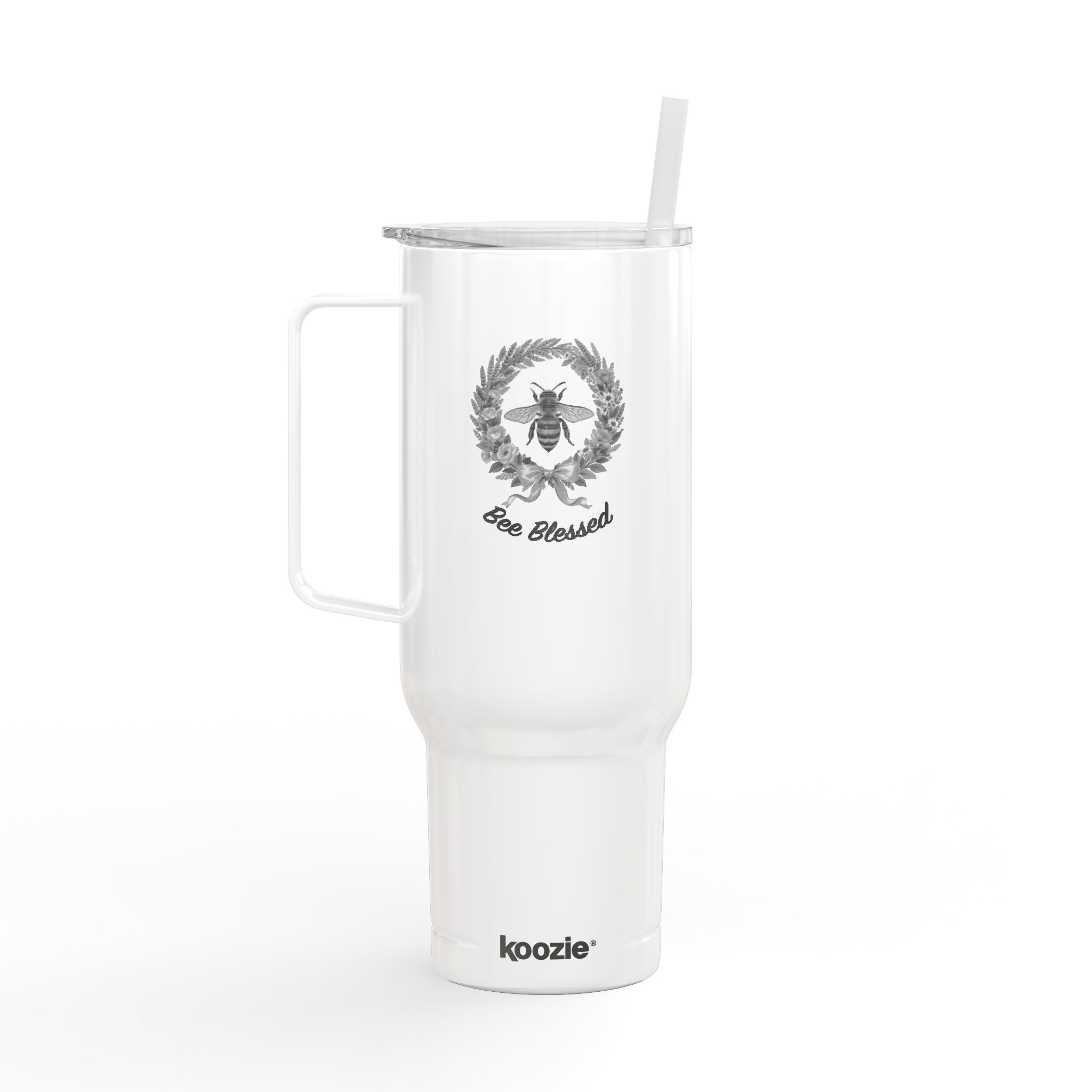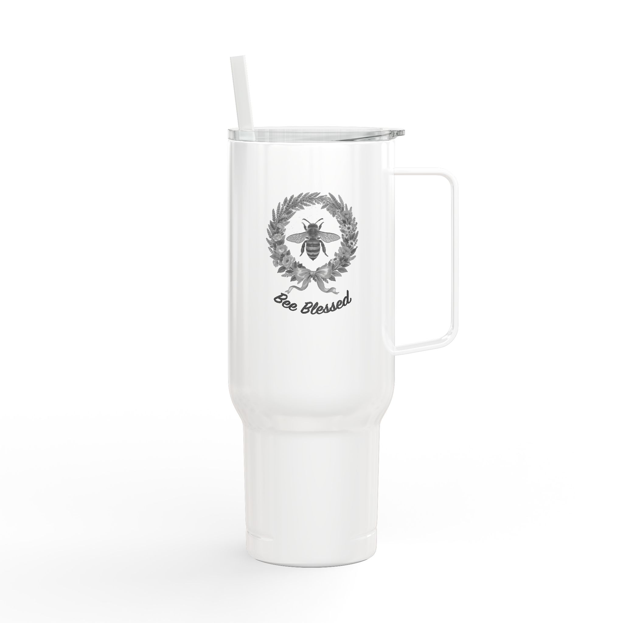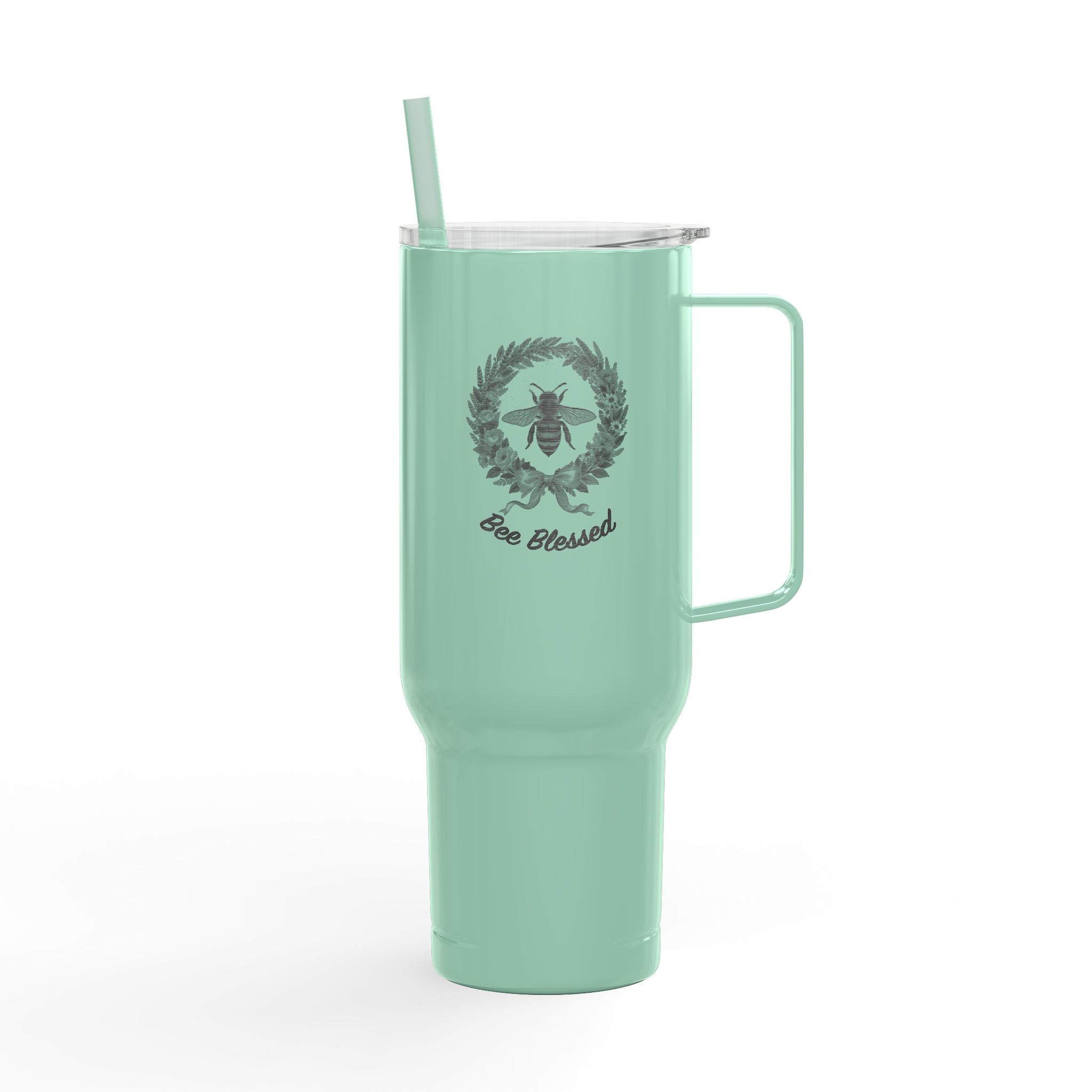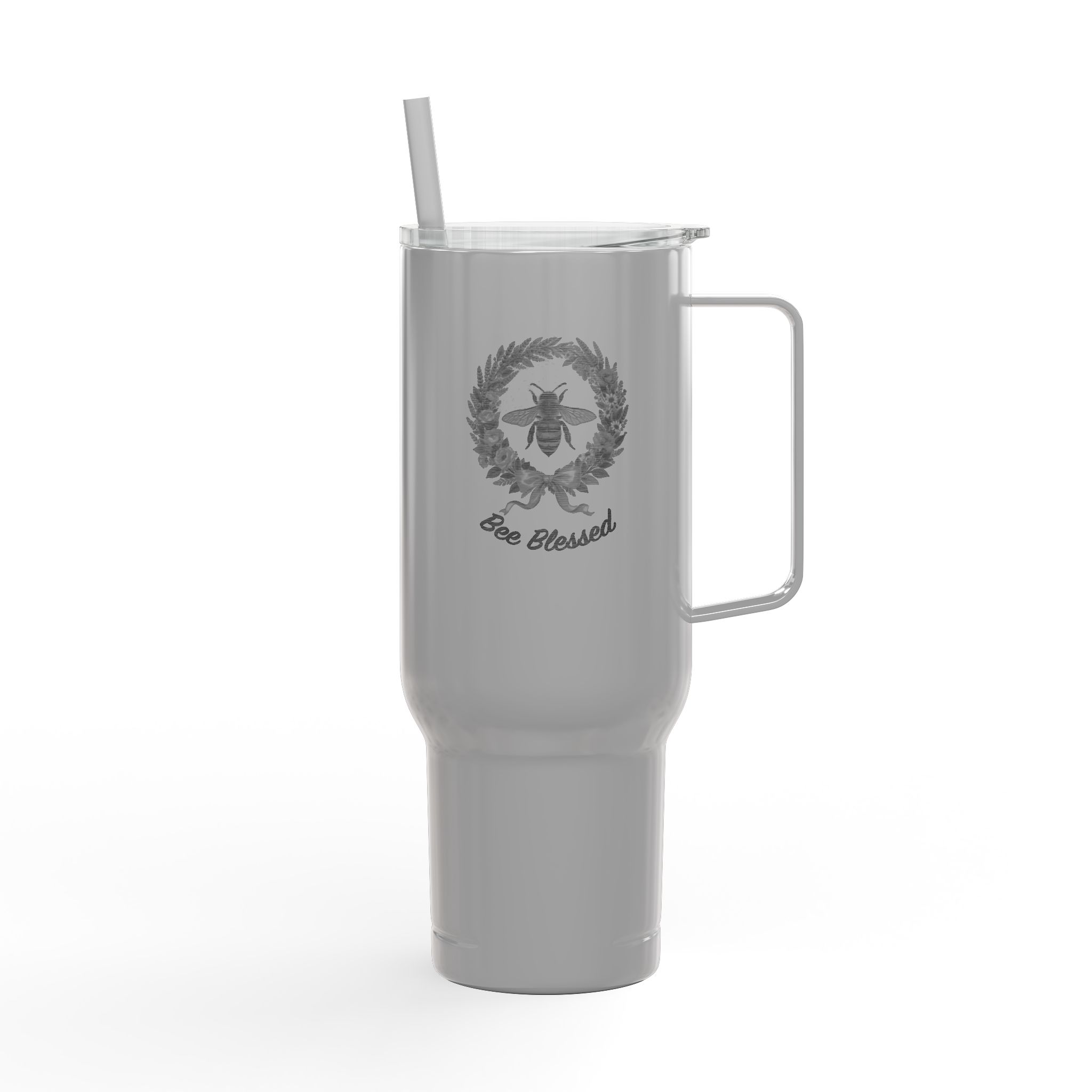This 40 oz insulated tumbler feels like a loyal sidekick for long mornings and longer road trips. The tall, narrow profile slips into cup holders while the comfortable handle gives a secure grip for coffee runs, trailhead brews, and marathon study sessions. Double-wall vacuum insulation keeps a latte steaming or iced tea chilled for hours. The glossy finish with precision engraving gives a subtle, timeless look that ages well. Thoughtful details — a press-fit slider lid, matching straw, and tapered base — make sipping simple and mess-free. Made from largely recycled materials, it blends clean design with quieter environmental impact. Hand wash to preserve the engraving and finish.