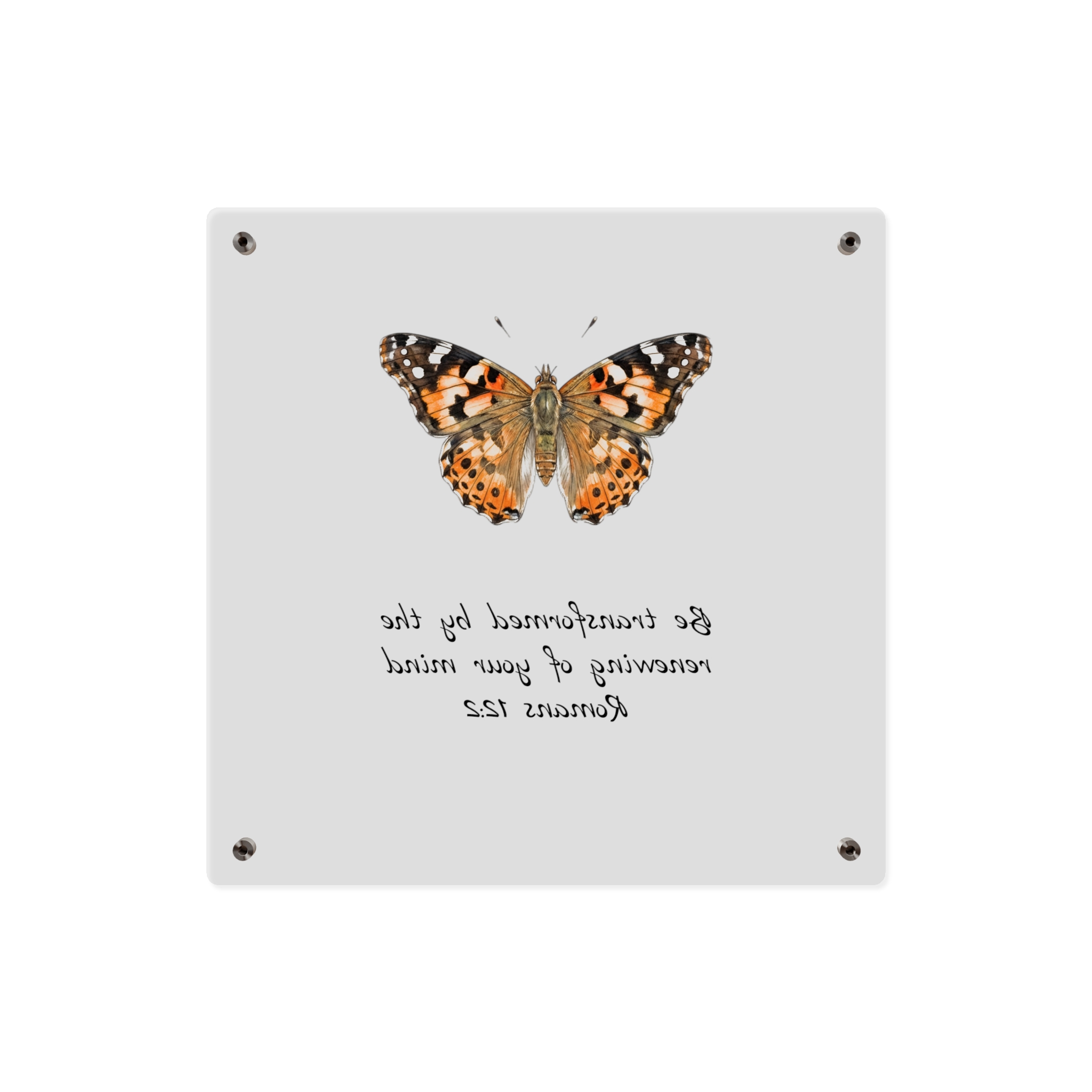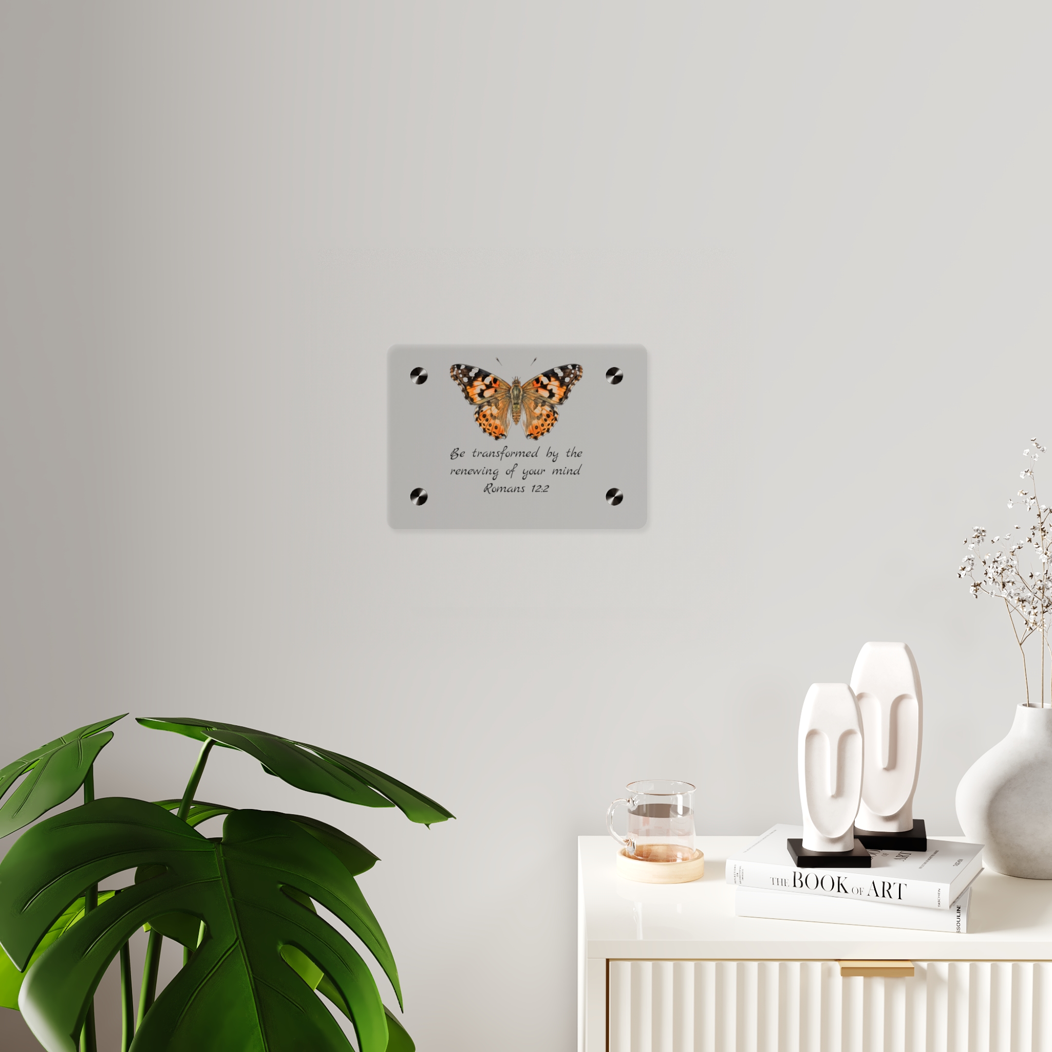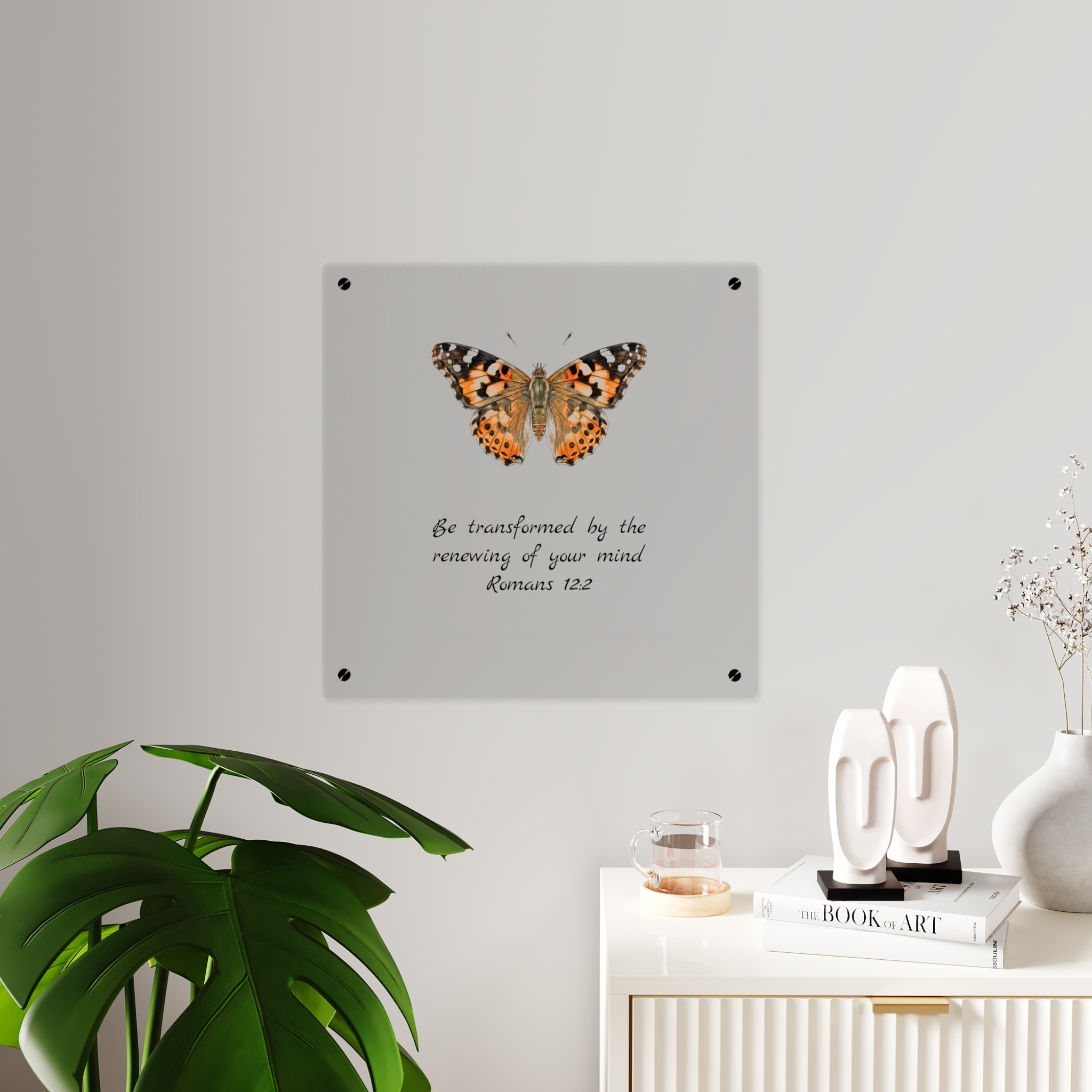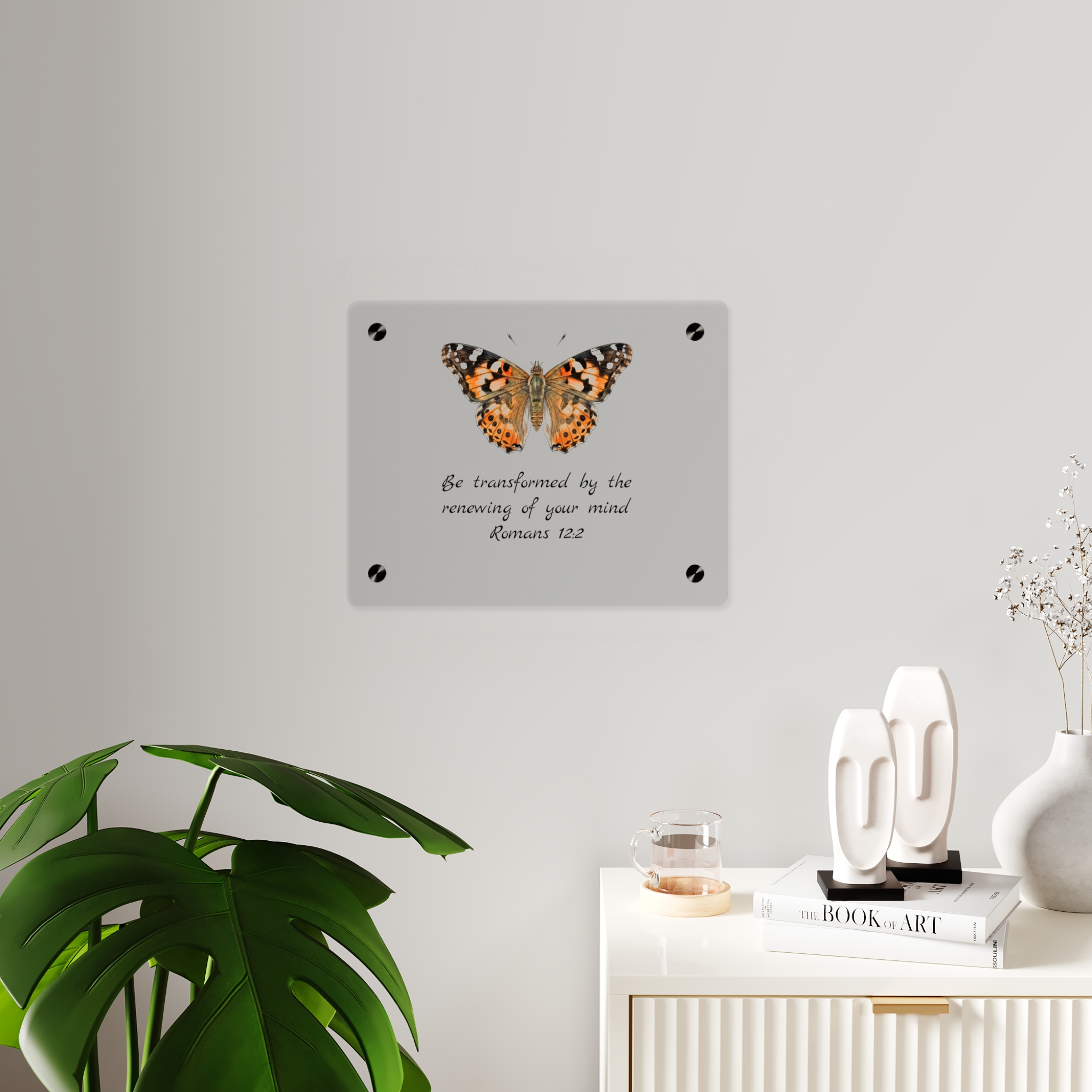 Acrylic wall panels that feel like a small window into nature. The transparent, glossy surface and crisp printing let delicate details—like the veins and warm tones of a butterfly’s wings—float above the wall. Brushed silver stand-offs create a subtle, elevated display that reads modern yet intimate. Lightweight and durable, these panels bring a quiet moment of color and texture to a hallway, reading nook, or gallery wall. Choose orientation and size to suit the space, then mount with the included hardware for an immediate, museum-like presence indoors.