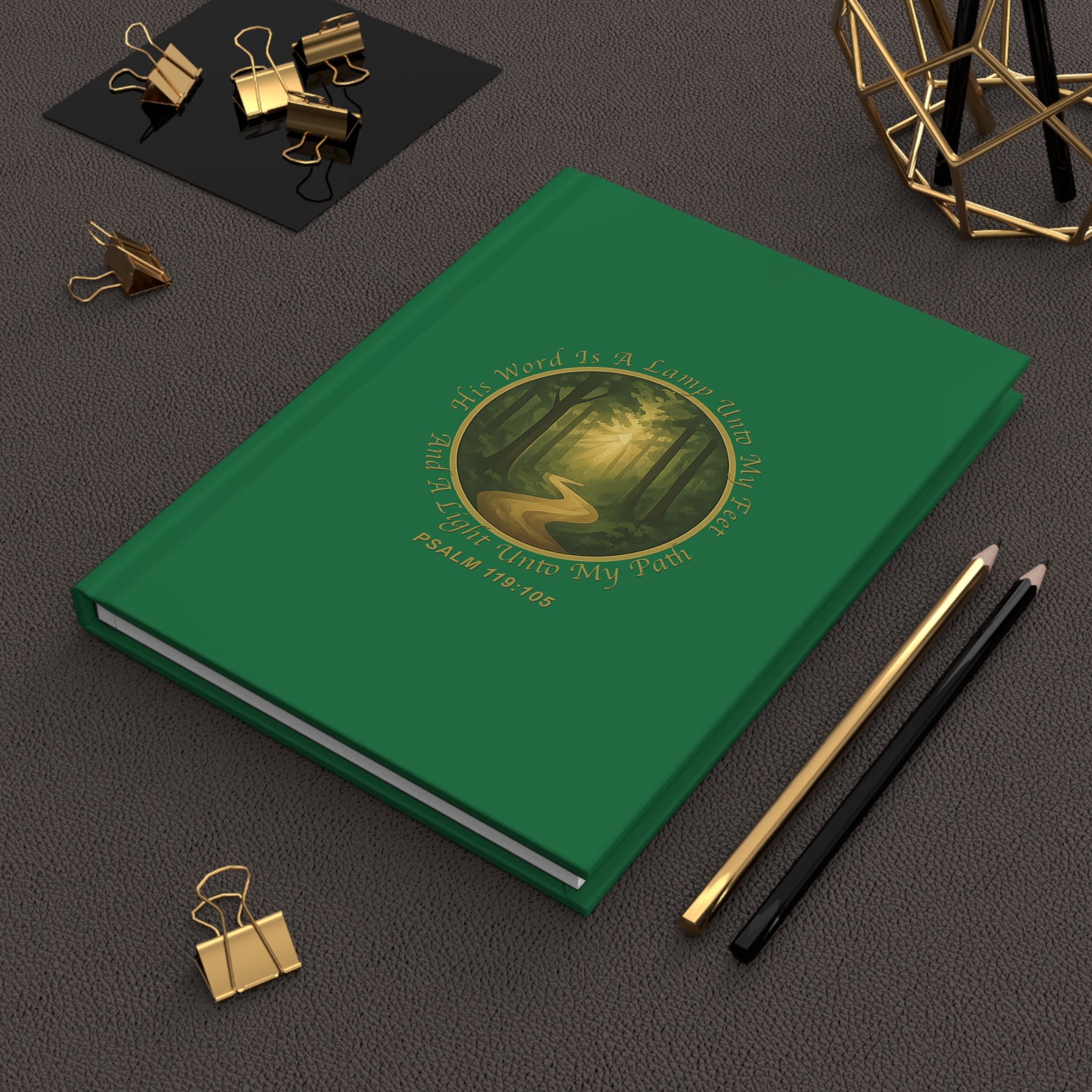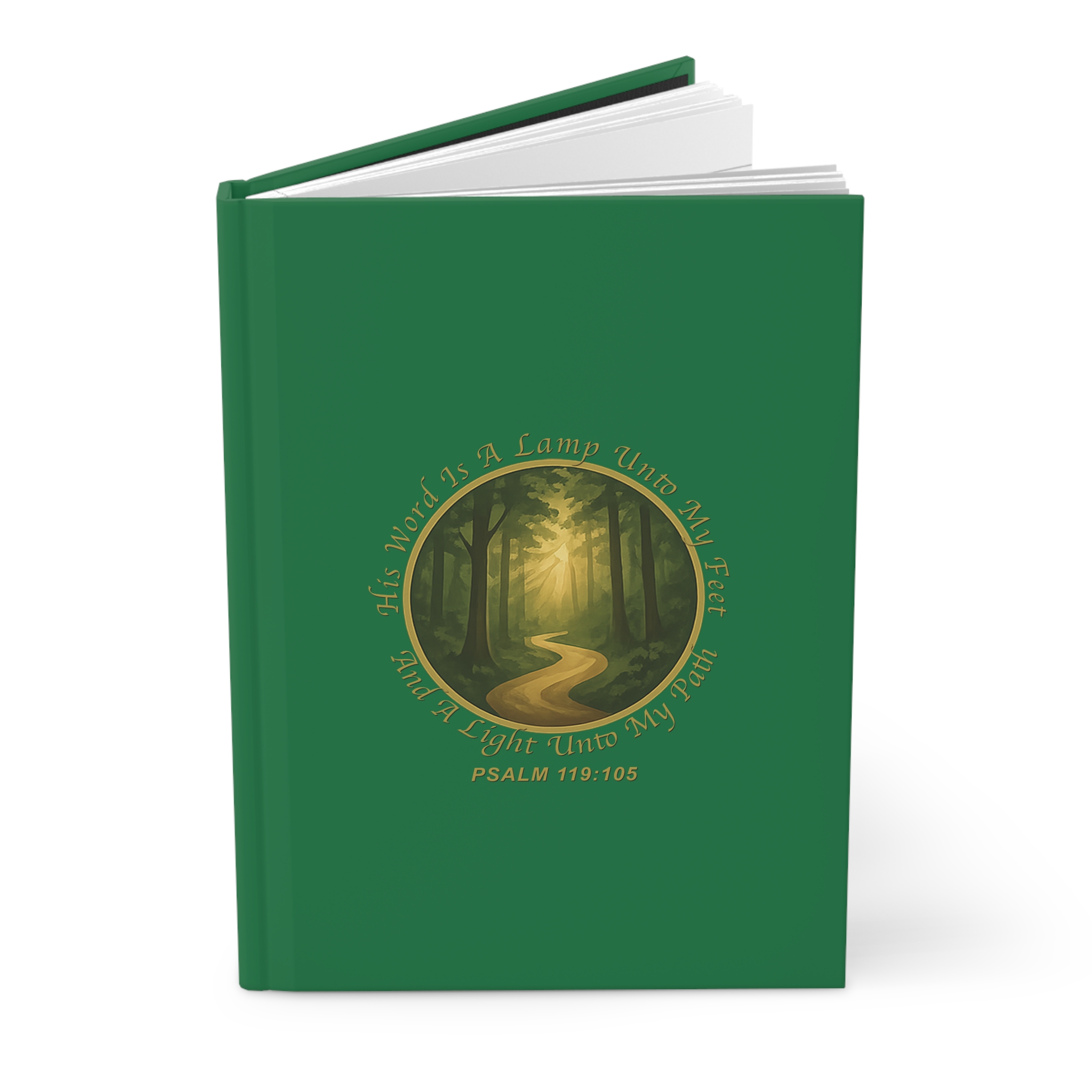 This hardcover journal feels like a quiet pause in the middle of a busy day. A green matte cover wraps a small, circular woodland scene where a winding path disappears into sunlit trees, crowned by an encouraging scripture verse. The sewn casewrap binding lets the book open flat and move with you. Inside, 150 lined pages with perforations give space for prayers, reflections, coaching notes, or plans you want to tear out and share. The matte laminated finish keeps the cover soft to the touch while protecting the vibrant, full-wrap artwork — a thoughtful companion for anyone sketching out goals, recording spiritual practices, or tracking progress in coaching sessions. Product features – Matte laminated cover for a smooth, durable finish – Vibrant, full wraparound print with crisp colors – Casewrap (sewn) binding for flexibility and flat opening – 150 lined pages (75 sheets) with perforations for easy removal – Matte finish; small production barcode on back cover Care instructions – Use a soft, clean and dry cloth to gently brush any dust or dirt off from the center of book outwards.