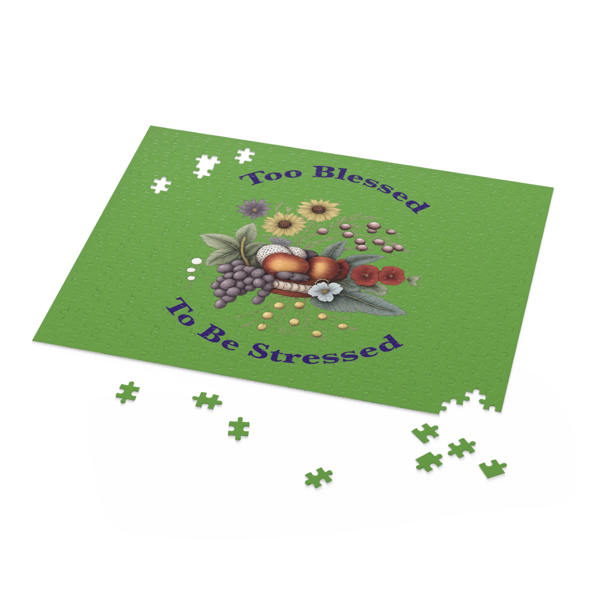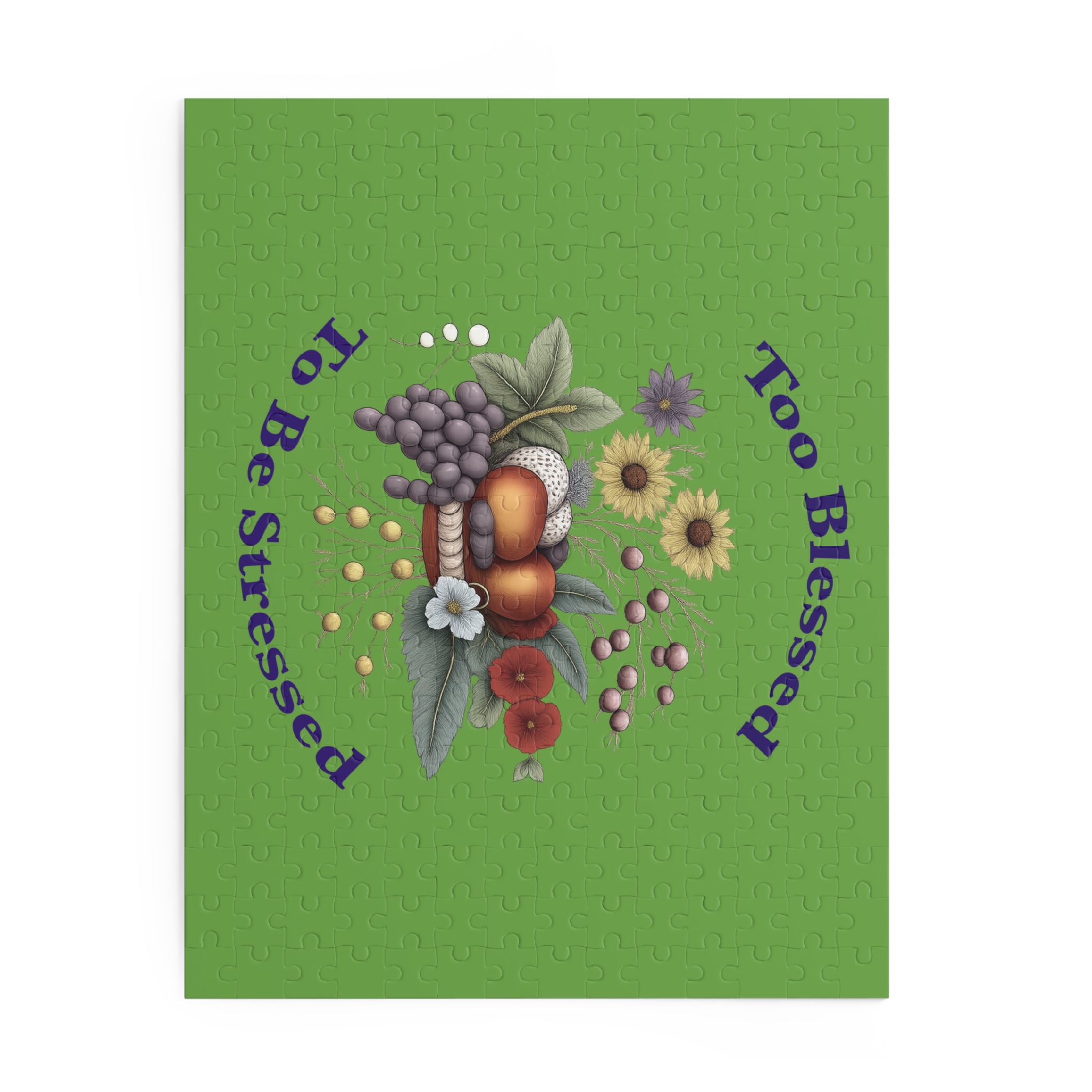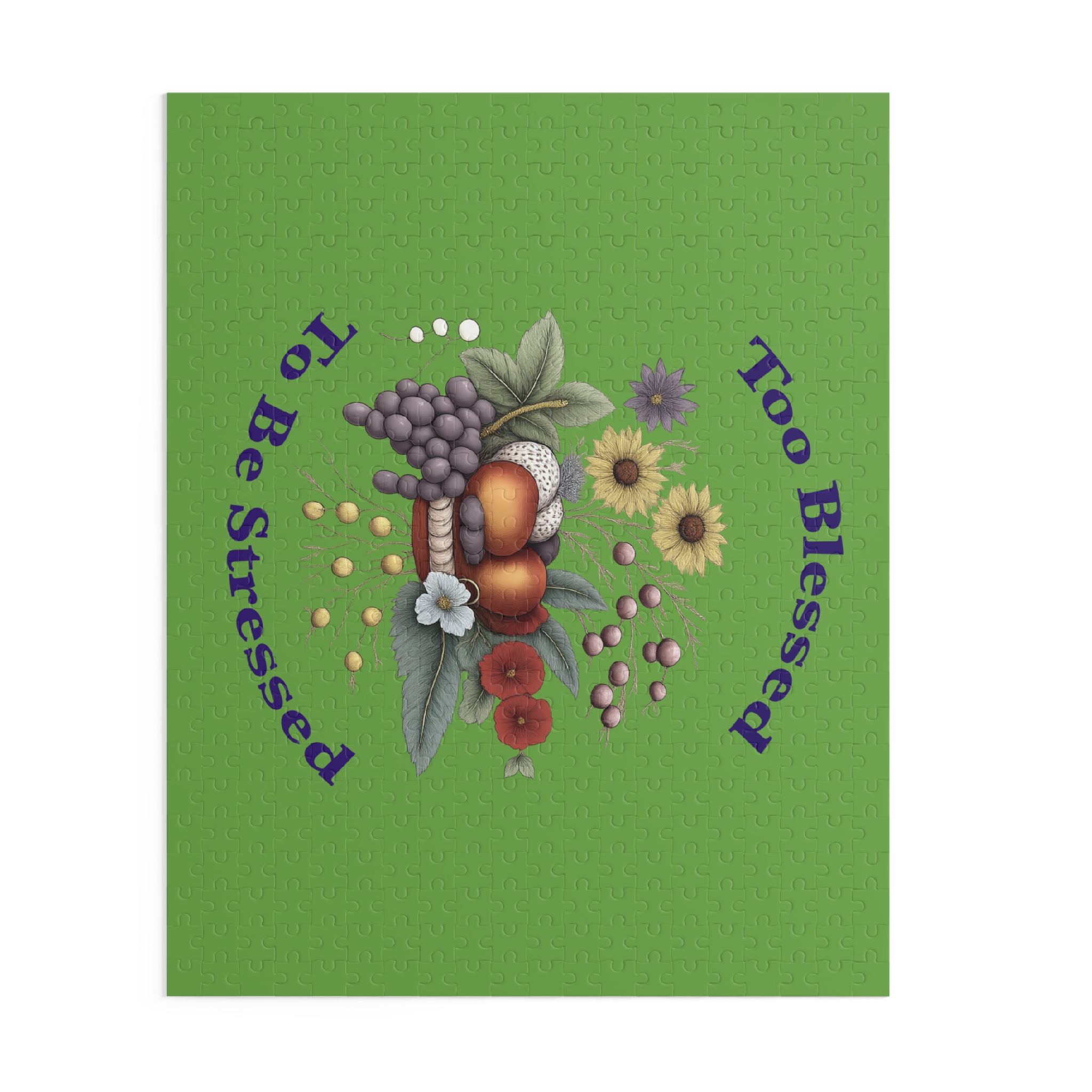 A bright, nostalgic puzzle that brings slow afternoons and friendly chatter to the table. Lush fruit and sunlit flowers sit at the center of a cheerful green field, ringed by the playful phrase “Too Blessed To Be Stressed.” Each piece snaps with satisfying weight and a glossy finish that makes the colors pop — the kind of puzzle you return to across tea refills and easy conversation. Choose from 120, 252, or 500 pieces to match how long you want the moment to last. Packaged in a compact paper box that shows the finished image for quick reference and gift-ready presentation.