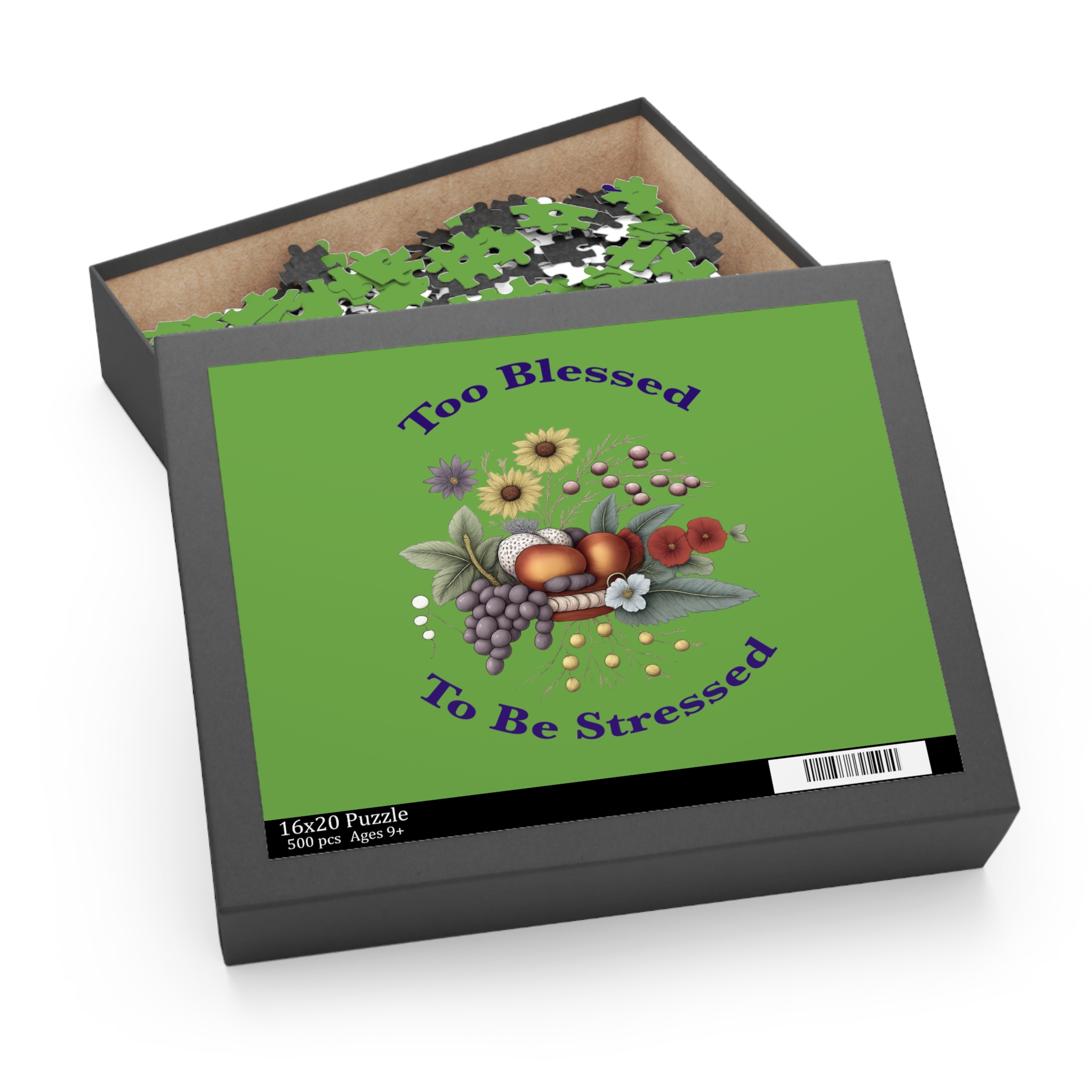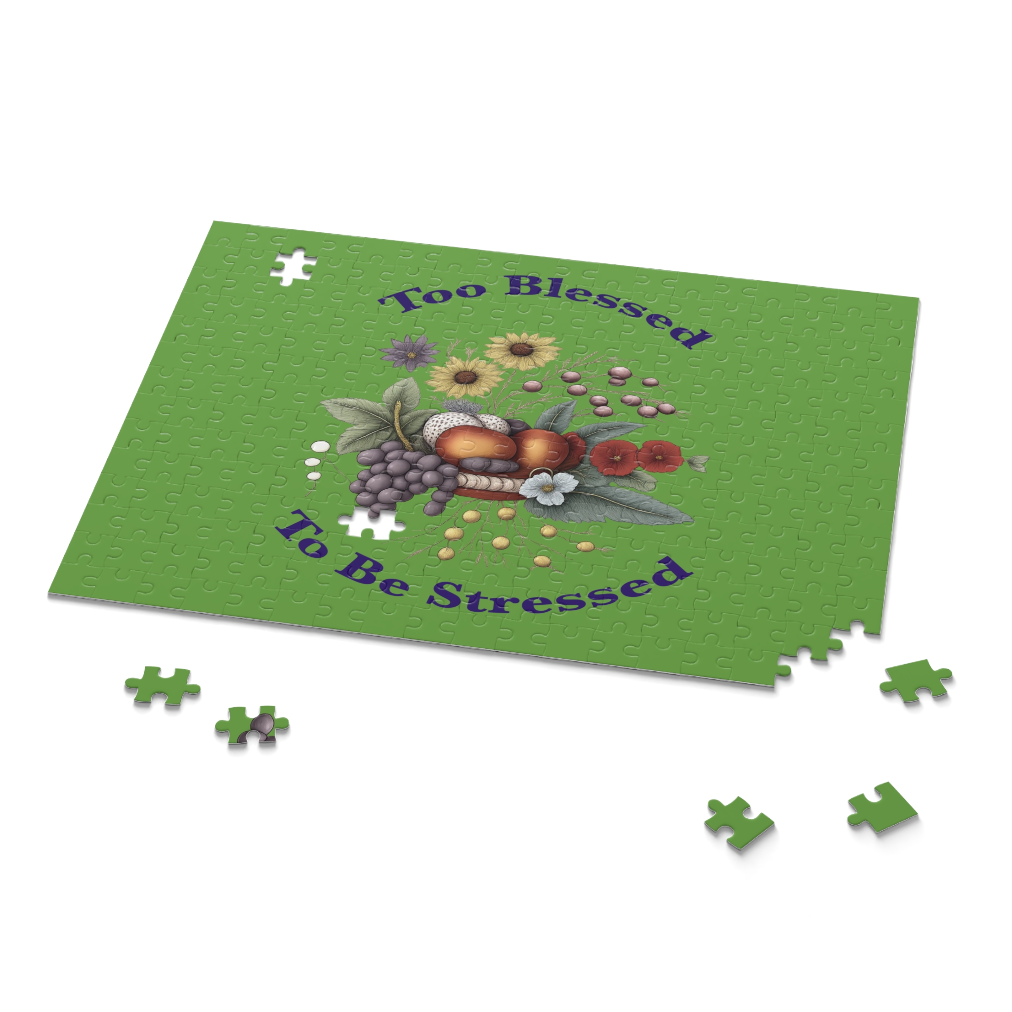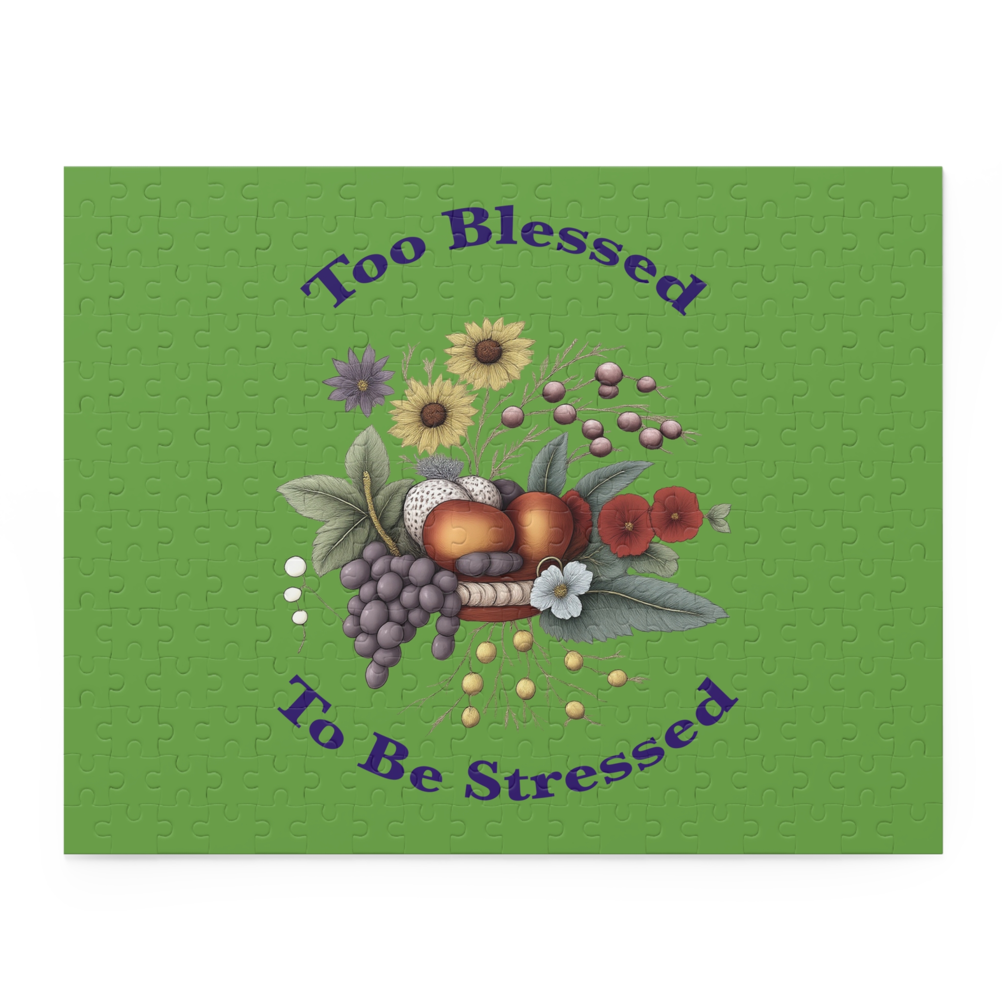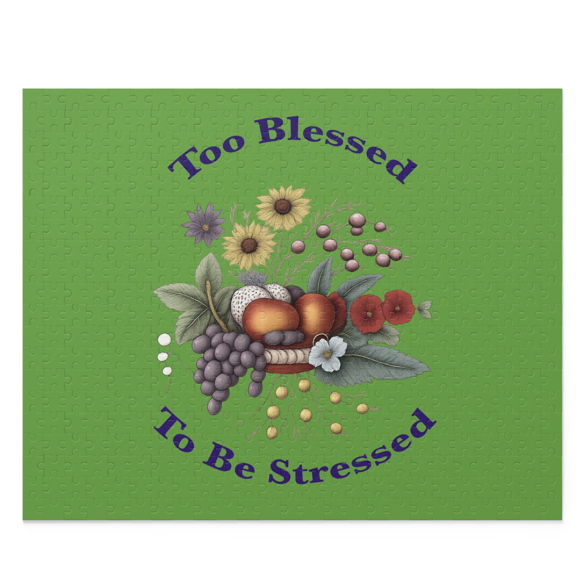 A bright, nostalgic puzzle that brings slow afternoons and friendly chatter to the table. Lush fruit and sunlit flowers sit at the center of a cheerful green field, ringed by the playful phrase “Too Blessed To Be Stressed.” Each piece snaps with satisfying weight and a glossy finish that makes the colors pop — the kind of puzzle you return to across tea refills and easy conversation. Choose from 120, 252, or 500 pieces to match how long you want the moment to last. Packaged in a compact paper box that shows the finished image for quick reference and gift-ready presentation.